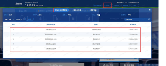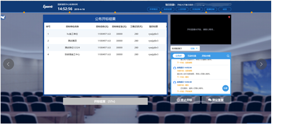 開標時間到后,代理點擊【公布投標人】按鈕,系統開始公布名單。