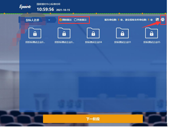 可以以圖標或列表形式展示名單,并可打印名單列表。名單是根據投標文件送達先后順序進行排序,名單打印只可在此環節打印,其他環節不顯示打印按鈕。