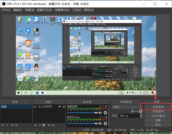雙擊桌面【OBS Studio】圖標,點擊【開始推流】,完成推流。
