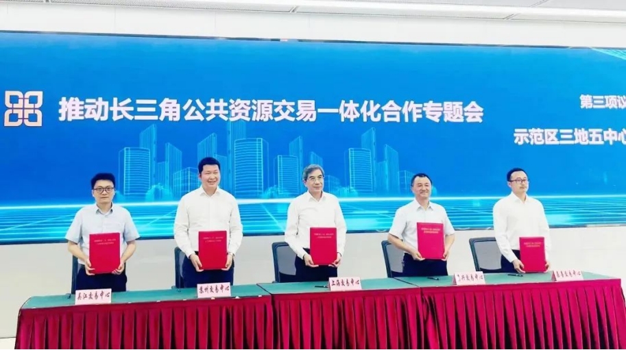 2023年5月,在上海市召開的“推動長三角公共資源交易一體化合作專題會”上,上海聯合產權交易所有限公司(上海市公共資源交易中心)、蘇州市公共資源交易中心、嘉興市公共資源交易中心、蘇州市公共資源交易中心吳江分中心、嘉興市公共資源交易中心嘉善分中心等五家公共資源交易機構(以下簡稱“三地五中心”)簽署了《共同落實長三角一體化示范區公共資源交易一體化發展合作協議》,標志著五地在公共資源交易一體化重點領域率先開展探索。吳江深入貫徹落實長三角一體化示范區統一部署,破除行政壁壘,探索行業深化整合共享新思路,開拓跨省公共資源交易高質量發展新路徑。